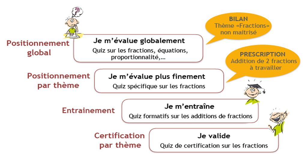 Positionnement par thème : mesure de chaque acquis visé et prescription d’entraînement adaptée.